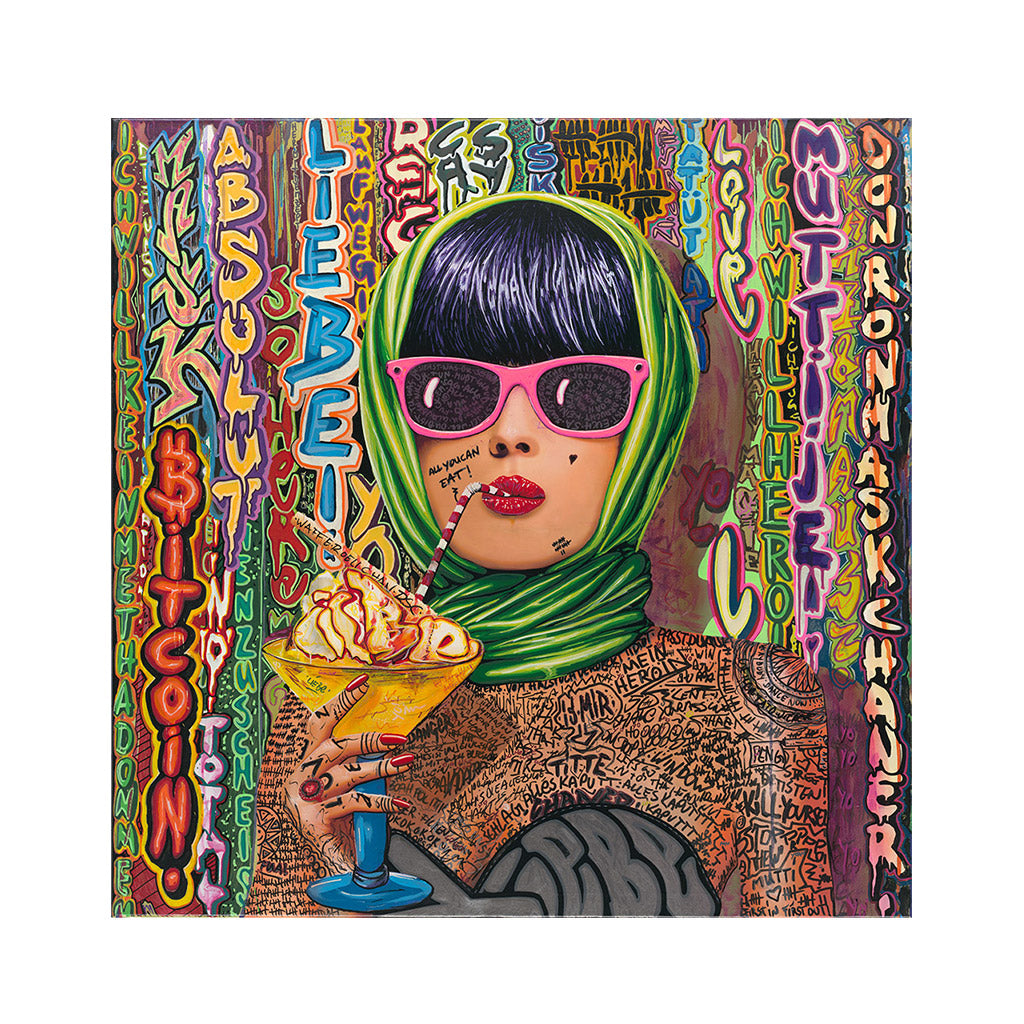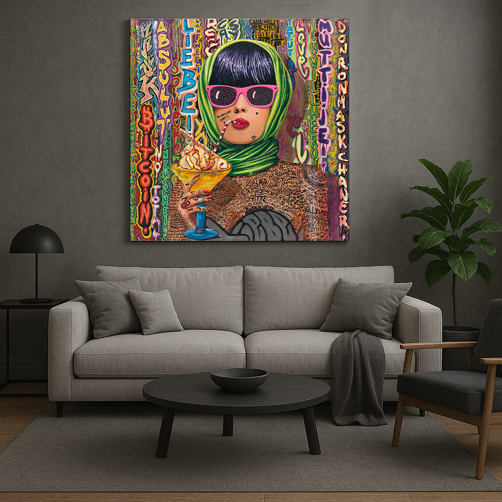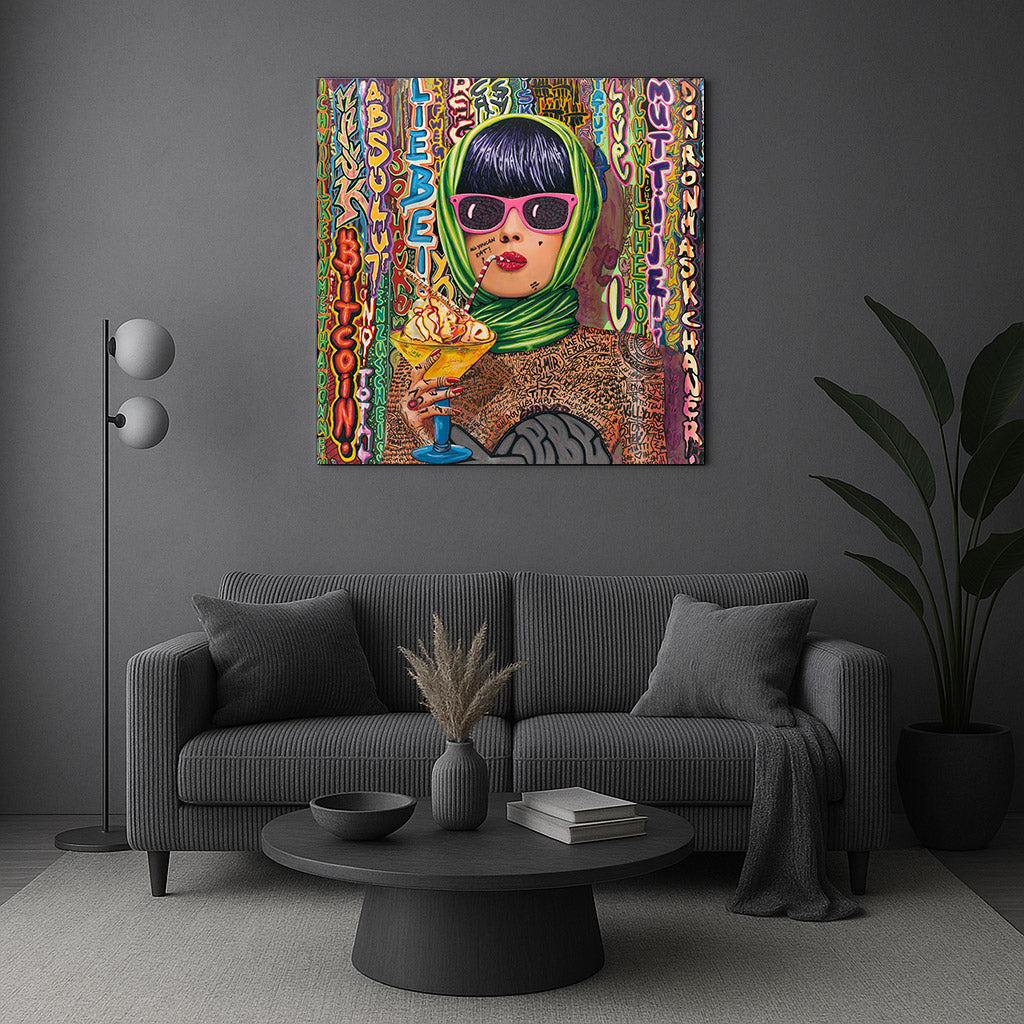 Die Kombination aus Pop-Art-Elementen und urbanen Einflüssen verleiht dem Bild eine moderne und dynamische Ausstrahlung.