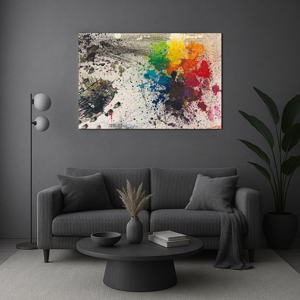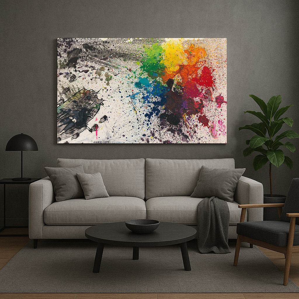 Die gesamte Komposition vermittelt den Eindruck eines Übergangs oder einer Transformation zwischen Dunkelheit und Licht, zwischen Struktur und Freiheit. Sie regt den Betrachter an, über Themen wie Kreativität, Dualität und die Verbindung zwischen Technik und Emotion nachzudenken.